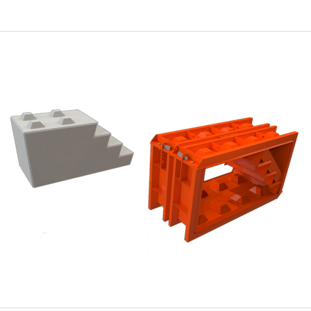 This mould allows you to create a block with a staircase shape at one end. These blocks are most commonly used as wall ends, enabling easy access to the top of the wall. You can also arrange them side by side to form a complete staircase